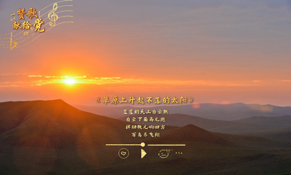 《草原上升起不落的太陽》創(chuàng)作于1952年,出自蒙古族小伙子的一份作業(yè)。當時,中央音樂學(xué)院的學(xué)生都要創(chuàng)作一首歌曲,作為結(jié)業(yè)作品。蒙古族青年美麗其格想到了家鄉(xiāng)美麗的草原,想到了共產(chǎn)黨帶來的新生活……他傾注了全部感情,創(chuàng)作了《草原上升起不落的太陽》。