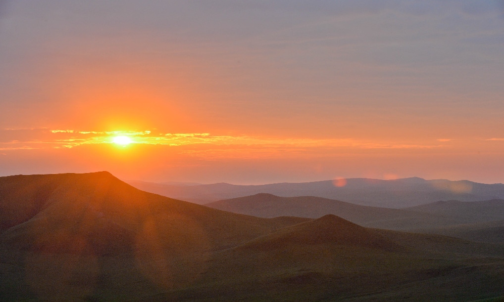 內(nèi)蒙古烏拉蓋草原上的日出景象(2014年6月22日攝)。