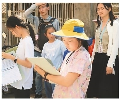 在北京,參與以“歷史文化街區(qū)保護更新與利用”為主題的青少年城市探索班的學生在做記錄。張仕瀟攝