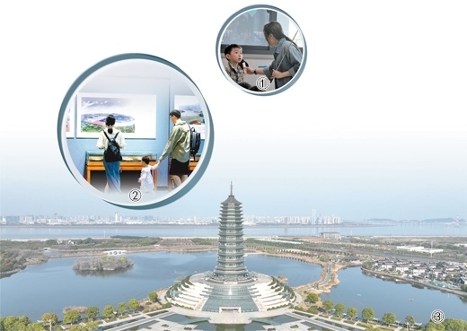 圖①:“水文化進百?!被顒幼哌M杭州師范大學附屬競潮小學。中國水利博物館供圖 圖②:游客在展區(qū)參觀。周方玲攝(影像中國) 圖③:中國水利博物館外景。中國水利博物館供圖