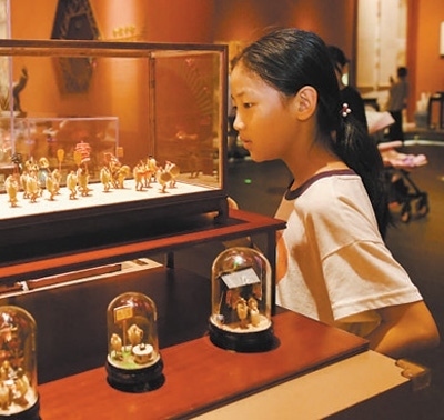 游客在中國大運河非物質文化遺產(chǎn)展示館內參觀。圖為新華社記者牟宇攝