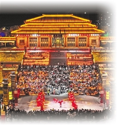 山東臨沂郯城縣郯國古城景區(qū),游客在觀看表演。張春雷攝(人民視覺)