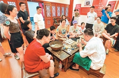 在東城區(qū)傳統(tǒng)韻味體驗(yàn)之旅中,游客在吉祥大戲院國粹京劇體驗(yàn)基地可以穿戴上京劇服裝道具,體驗(yàn)戲曲演員化妝過程,品嘗戲曲主題“吉祥咖啡”,觀看經(jīng)典京劇演出,與名師名家互動(dòng),零距離感受國粹經(jīng)典的魅力;在廣譽(yù)遠(yuǎn)中醫(yī)藥文化體驗(yàn)基地,游客通過聽中醫(yī)講解、辨藥材識(shí)優(yōu)劣、手工制作香囊等多種體驗(yàn)方式,感受中醫(yī)藥文化。在和平菓局京味文化體驗(yàn)基地,游客可以走進(jìn)煤廠胡同、小覺寺等老北京場景,體驗(yàn)拉洋片、草編藝術(shù)、皮影、捏面人等傳統(tǒng)京味文化。