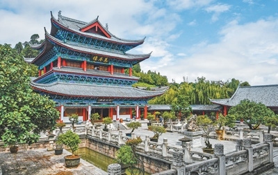 “一座土司府,半部民族史”。木府萬卷樓前的這10個(gè)字,將邊地古城各民族交往交流交融的故事娓娓道來。獅子山拱衛(wèi)、護(hù)城河縈繞,木府的選址與布局十分講究。作為麗江木氏土司府的衙署,木府始建于明代,后來歷經(jīng)多次擴(kuò)建和修繕,形成了現(xiàn)有的建筑群布局,議事廳、萬卷樓、護(hù)法殿等沿中軸線依次排開。歷經(jīng)400多年風(fēng)雨的木府,作為麗江古城中的重要文化地標(biāo),聆聽著各民族百川匯流向前的歷史回響。