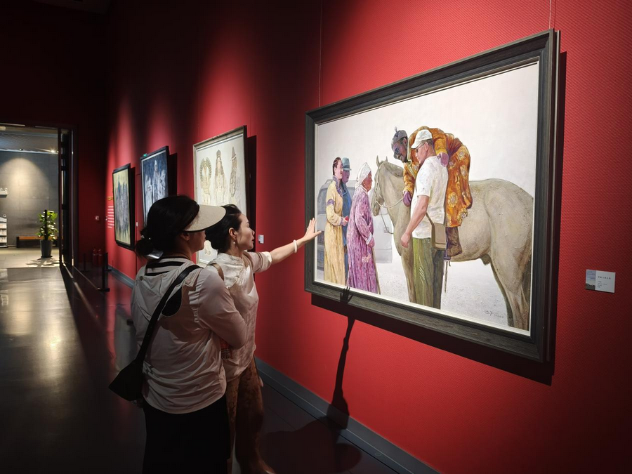 “吾心歸 ——內蒙古美術館館藏妥木斯師生油畫作品展”(8.8-9.7,3/4號展廳):該展覽像一部立體的草原藝術編年史,妥木斯筆下的蒙古馬依然昂揚,而弟子們的作品早已玩出了新花樣:超現(xiàn)實手法讓羊群飄在星空下,極簡線條勾勒出蒙古包的幾何之美。在“當代回聲”篇章里,能清晰看見草原意象如何在畫布上完成從傳統(tǒng)到現(xiàn)代的蛻變,就像馬頭琴也能彈出電子旋律,根沒變,韻更活了。