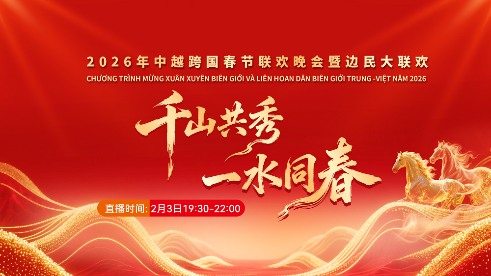 【直播簡(jiǎn)介】2月2日至2月3日,2026年中越跨國(guó)春節(jié)聯(lián)歡晚會(huì)暨邊民大聯(lián)歡活動(dòng)相繼在越南老街省、中國(guó)云南省紅河州舉行。兩國(guó)人民以文化為橋梁,以友誼為紐帶,進(jìn)一步鞏固中越地方友好合作關(guān)系,構(gòu)建具有戰(zhàn)略意義的中越命運(yùn)共同體。2月3日晚19:30至22:00,中央廣播電視總臺(tái)央視頻將聯(lián)動(dòng)25家主流媒體,現(xiàn)場(chǎng)直播在紅河州河口縣舉行的2026年中越跨國(guó)春節(jié)聯(lián)歡晚會(huì),帶您沉浸式體驗(yàn)兩國(guó)藝術(shù)家跨越國(guó)界的精彩文化盛宴,感受中越兩國(guó)人民“同飲一江水、攜手共發(fā)展”的深情厚誼,共度一個(gè)喜慶祥和、心手相連的跨國(guó)春夜。