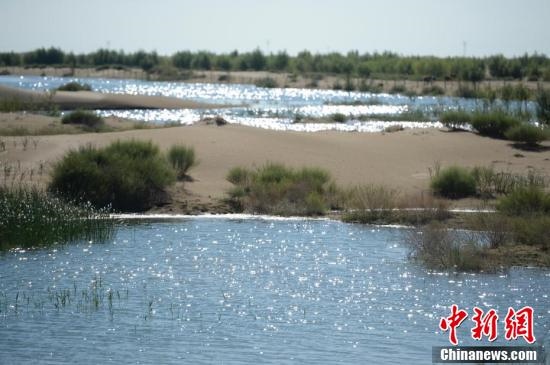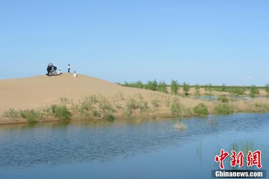 7月24日,引自黃河的凌水讓沙漠上充滿生機。據(jù)悉,中國第七大沙漠--庫布齊沙漠所處的杭錦旗境內(nèi),每年過境水量310億立方米,當?shù)匾荒耆忠坏臅r間都是凌汛期。政府因地制宜,2016年投資建成分凌引水渠、生態(tài)圍堤等設(shè)施,自2016年至2018年黃河凌汛期以來,累計分凌5千余萬立方米,形成約36平方公里保護濕地的面積,原來為沙漠的地貌逐漸變成綠洲,農(nóng)牧民開始發(fā)展野牛養(yǎng)殖與農(nóng)家樂旅游業(yè)。中新社記者劉文華攝