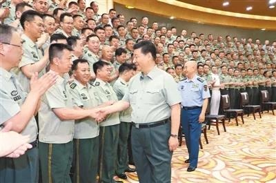 7月15日至16日,中共中央總書記、國家主席、中央軍委主席習(xí)近平在內(nèi)蒙古考察并指導(dǎo)開展“不忘初心、牢記使命”主題教育。這是16日上午,習(xí)近平在呼和浩特親切接見駐內(nèi)蒙古部隊(duì)副師職以上領(lǐng)導(dǎo)干部和團(tuán)級(jí)單位主官,代表黨中央和中央軍委向駐內(nèi)蒙古部隊(duì)全體官兵致以誠摯問候?! ⌒氯A社記者 李 剛攝