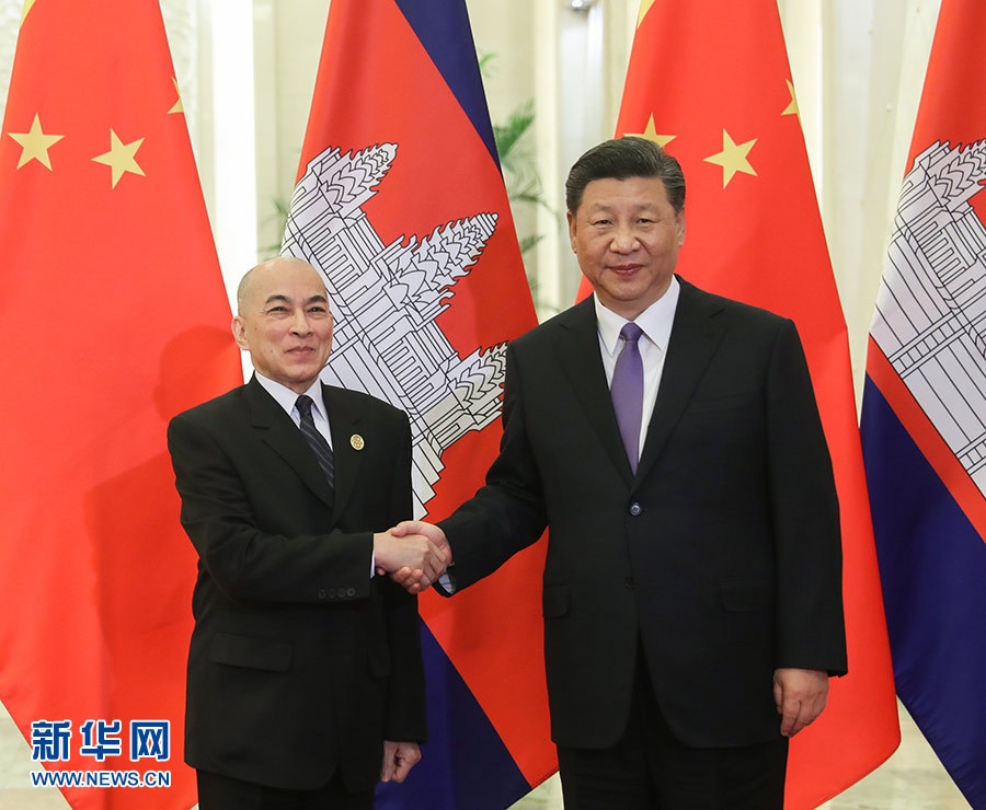 國家主席習近平14日在人民大會堂會見柬埔寨國王西哈莫尼。