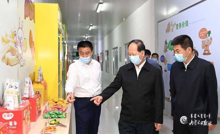 7月2日,自治區(qū)黨委書記、人大常委會(huì)主任石泰峰深入烏蘭察布市察右前旗內(nèi)蒙古薯都凱達(dá)食品有限公司,了解京蒙對(duì)口幫扶企業(yè)馬鈴薯產(chǎn)品生產(chǎn)銷售情況。內(nèi)蒙古日?qǐng)?bào)社融媒體記者 袁永紅 攝