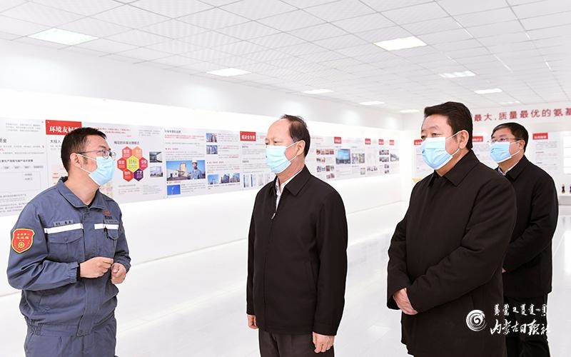 11月17日,自治區(qū)黨委書記、人大常委會主任石泰峰來到通遼梅花生物科技有限公司,了解玉米深加工產(chǎn)業(yè)鏈項目建設和運營情況。內(nèi)蒙古日報記者 袁永紅 攝