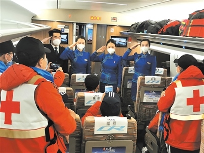 作為連通全國的運(yùn)輸動(dòng)脈,在完成常規(guī)運(yùn)輸任務(wù)的基礎(chǔ)上,高鐵列車還承擔(dān)起了運(yùn)送醫(yī)務(wù)人員、醫(yī)療用品和保障物資的特別任務(wù)。內(nèi)蒙古援鄂醫(yī)療隊(duì)員兩批次乘坐G2438次列車從北京中轉(zhuǎn)赴武漢;五批次乘坐“草原動(dòng)車”由鄂爾多斯回到呼和浩特?!八陀⑿鄢稣鳎佑⑿刍丶摇?,七次運(yùn)輸任務(wù),高鐵車隊(duì)以最高禮遇和精心的服務(wù),贏得醫(yī)療隊(duì)員們的紛紛好評(píng)。“謝謝你們,出發(fā)時(shí)為我們送行,歸來時(shí)為我們唱起凱旋之歌?!贬t(yī)療隊(duì)隊(duì)員李紅娟緊緊握住列車長(zhǎng)張雨的手說。
