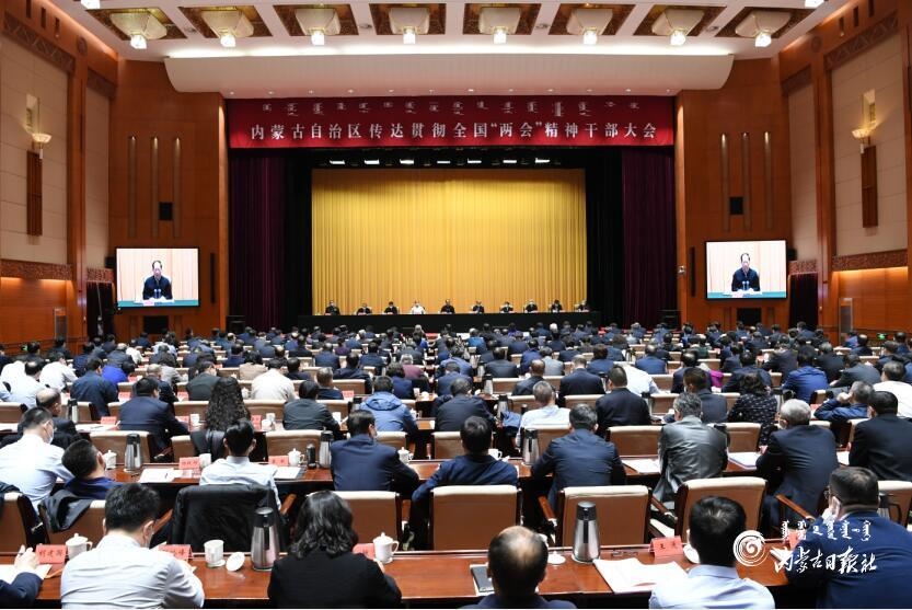 3月12日下午,自治區(qū)黨委召開(kāi)干部大會(huì),傳達(dá)學(xué)習(xí)全國(guó)“兩會(huì)”精神,安排部署貫徹落實(shí)工作。內(nèi)蒙古日?qǐng)?bào)社融媒體記者 袁永紅 攝