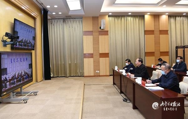 10月24日,自治區(qū)黨委書記、人大常委會主任石泰峰來到自治區(qū)疫情防控工作指揮部與二連浩特市視頻連線,了解應對處置新冠肺炎疫情工作情況。內蒙古日報社融媒體記者袁永紅攝