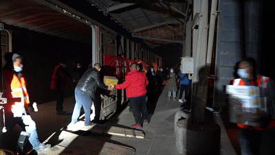 21日中午,額濟(jì)納旗東600多公里外的巴彥淖爾市,派出由50名醫(yī)務(wù)人員組成的醫(yī)療隊(duì)趕赴額濟(jì)納旗之后,當(dāng)晚又啟動(dòng)援助物資調(diào)運(yùn)工作,星夜馳援額濟(jì)納旗。22日凌晨,緊急調(diào)配的一批醫(yī)用防護(hù)服、口罩、多功能防護(hù)面罩等醫(yī)療物資,以及蔬菜、羊肉、牛奶、方便面等防疫物資緊急裝車(chē),由專(zhuān)列送往阿拉善盟。