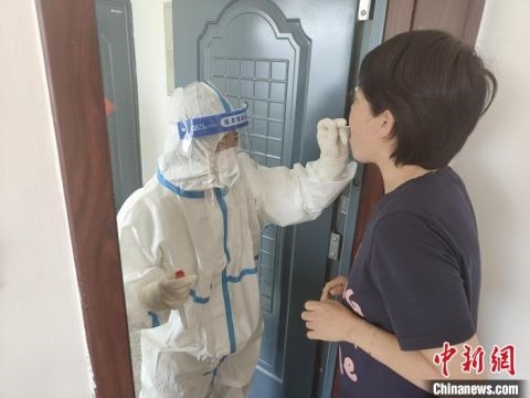 圖為工作人員上門(mén)為王璧做核酸檢測(cè)。 二連浩特市公安局供圖