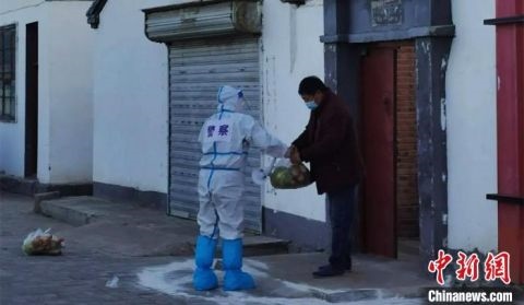 圖為為封控區(qū)人員運(yùn)送物資。 二連浩特市公安局供圖