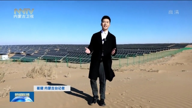 崔健內蒙古臺記者:這里是中國第七大沙漠——庫布其沙漠,我現(xiàn)在所在的區(qū)域是鄂爾多斯市達拉特光伏發(fā)電應用領跑者基地,也是全國最大的沙漠生態(tài)光伏發(fā)電站、全國最大光伏治沙基地。通過航拍鏡頭我們看到,這片區(qū)域的光伏板很壯觀,這里全部建成后年發(fā)電量可達40億度,年減排320萬噸二氧化碳,相當于種下2900萬棵樹。
