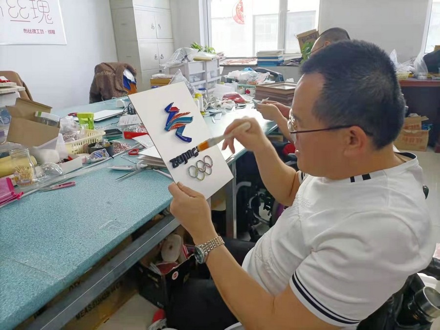 呼和浩特市殘聯(lián)相關(guān)負責(zé)人介紹,用盤扣工藝制作的北京冬奧會、冬殘奧會會徽,是將此工藝與服裝脫離開來,以裝飾畫的形式展現(xiàn)。中式盤扣具有紐帶和橋梁意義,借此表達內(nèi)蒙古殘疾人對北京冬奧會和冬殘奧會的關(guān)注,也讓內(nèi)蒙古殘疾人堅韌不拔、自強不息的精神以這個作品為紐帶傳播到世界各地。