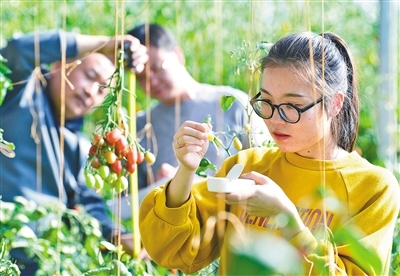 測(cè)試越冬番茄。本報(bào)記者馬建荃攝