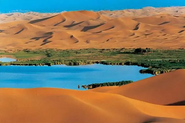 巴丹吉林沙漠年降水量不足40毫米,但是沙漠中的湖泊竟然多達(dá)100多個(gè)。高聳入云的沙山,神秘莫測的鳴沙,靜謐的湖泊、濕地,構(gòu)成了巴丹吉林沙漠獨(dú)特的迷人景觀,于2005年被《中國國家地理》雜志評為中國最美麗的沙漠,每年吸引了上萬名國內(nèi)外游客前來觀光。