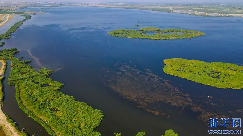 經(jīng)過多年治理,烏梁素海重現(xiàn)“塞外明珠”美景(無人機照片)。新華社記者彭源 攝