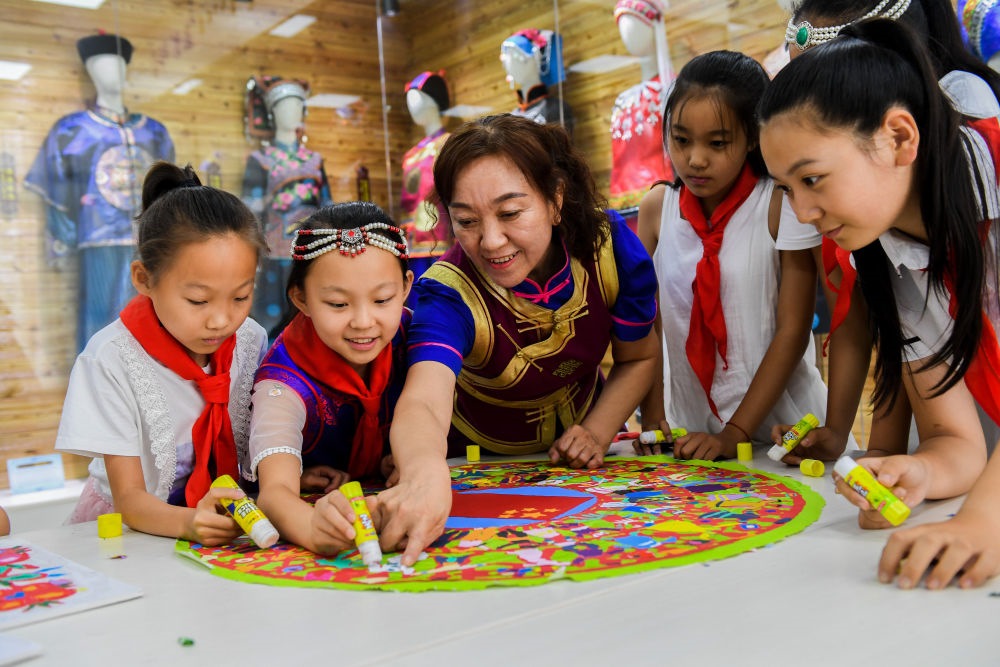 這是2019年7月15日拍攝的赤峰市松山區(qū)興安街道臨潢家園社區(qū)的民族融合小課桌。新華社記者劉磊攝