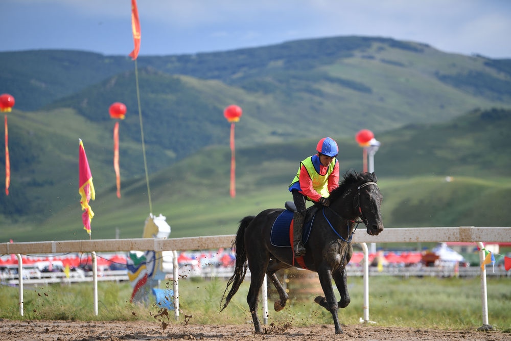 牧民在興安盟那達慕參加賽馬比賽(2020年8月9日攝)。新華社記者貝赫攝