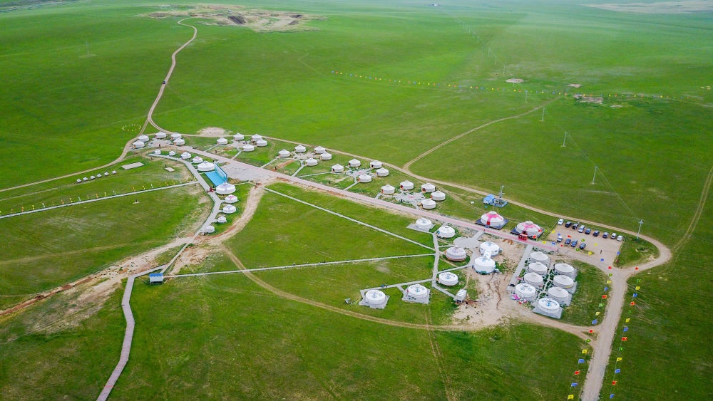 這是內(nèi)蒙古錫林郭勒盟寶力根蘇木的一處那達慕會場(2017年7月21日攝,無人機照片)。新華社記者連振攝