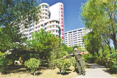 9月23日上午,物業(yè)工作人員在自治區(qū)示范性養(yǎng)老公寓院內(nèi)進(jìn)行綠化維護(hù)。內(nèi)蒙古日報(bào)社融媒體記者 安寅東攝