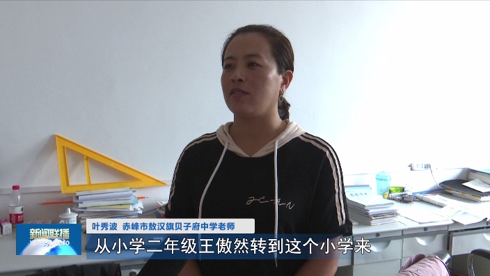 赤峰市敖漢旗貝子府中學(xué)七年二班老師 從小學(xué)二年級(jí)王傲然轉(zhuǎn)到這個(gè)小學(xué)來,他(孫偲藐)就一直照顧他(王傲然),(小學(xué)階段)一直照顧到六年級(jí),上樓下樓的他(孫偲藐)就背著他(王傲然)、有時(shí)攙著他、扶著他。