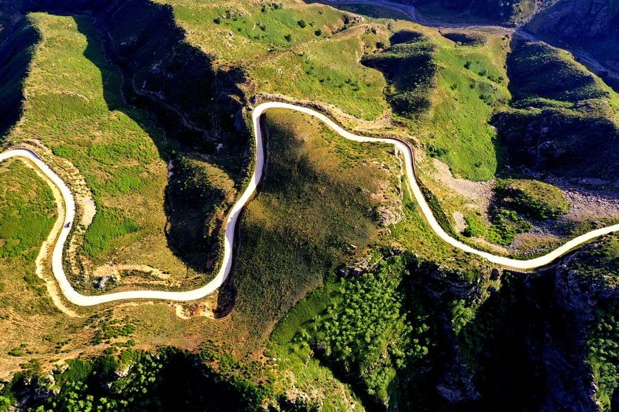 一輛轎車從井爾梁盤山公路經(jīng)過
