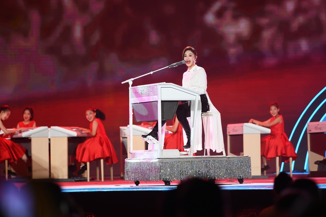一臺可以腳踏的鋼琴是《玖月奇跡》給人最為深刻的印象,今天這架鋼琴來到了草原文化節(jié)的現(xiàn)場,動感的旋律,高亢的嗓音配合著極具節(jié)奏感的彈奏給人以深刻的印象,這樣的表演方式獨(dú)樹一幟,能到現(xiàn)場一睹風(fēng)采的觀眾都非常幸運(yùn)。