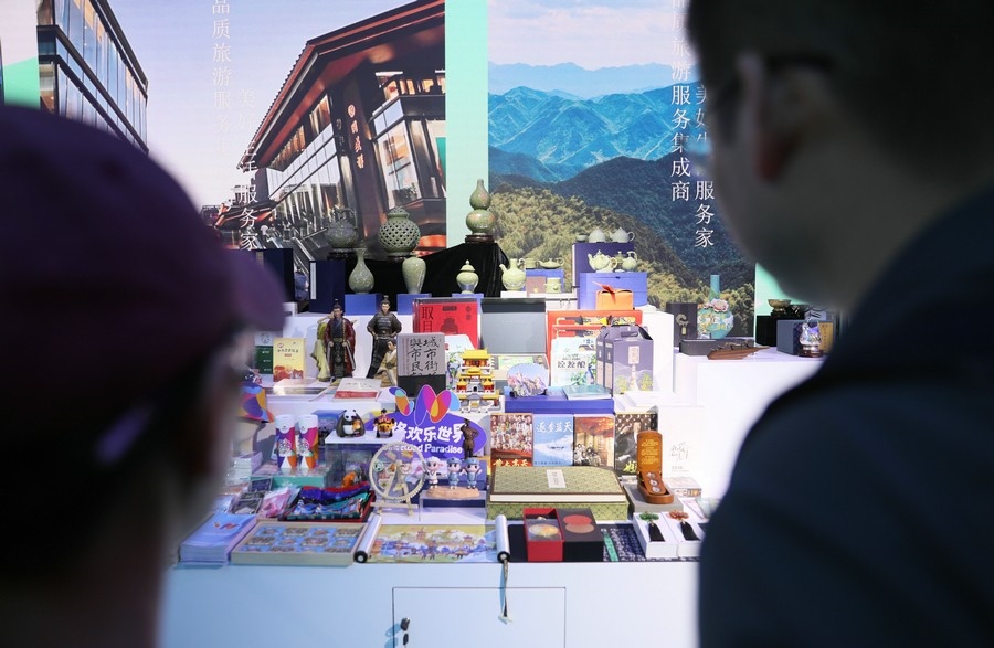 參展機(jī)構(gòu)工作人員正在布置展品
