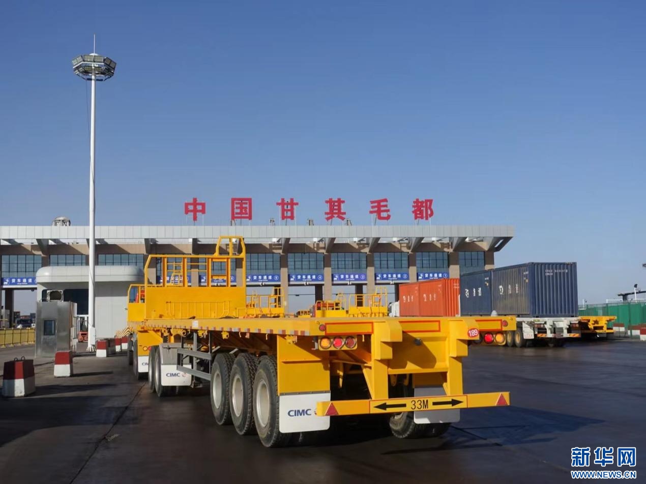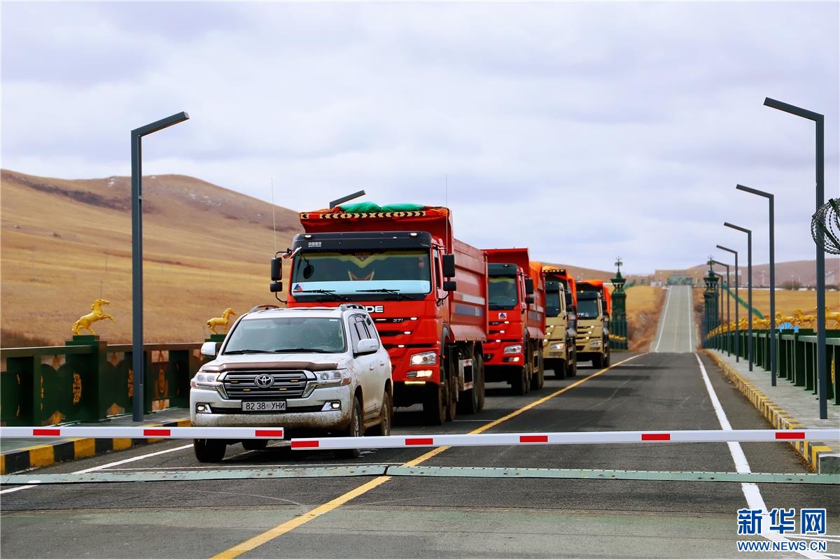 大卡車駛過(guò)珠恩嘎達(dá)布其口岸。資料圖  ??