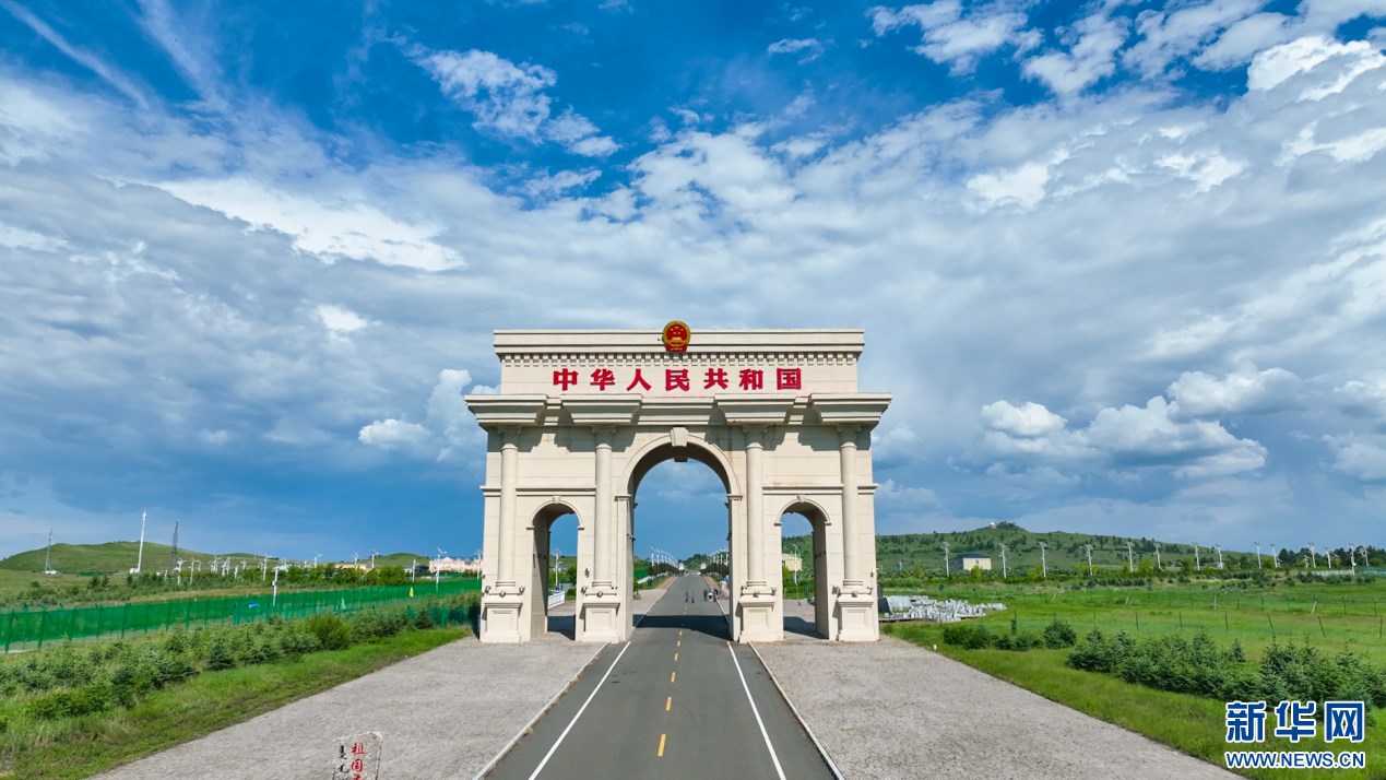 巍峨壯觀的阿爾山口岸國(guó)門。新華網(wǎng)發(fā) (賴志強(qiáng) 攝)