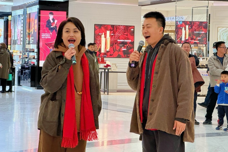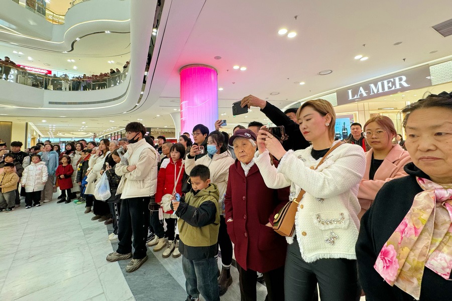 當天是甲辰龍年正月初五,商場里闔家出行的市民和外地游客絡(luò)繹不絕,大家興致盎然地圍觀了演出。