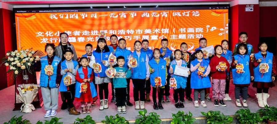 活動現(xiàn)場,20余名小朋友在家長的陪同下,參觀了“藝美北疆 遇見青城”——呼和浩特市百福迎春賀歲作品展”和“藝美北疆 新春納福”——池上墨苔 水墨集中國書畫名家邀請展,小朋友在呼和浩特美術(shù)館老師的講解下,了解了春節(jié)貼“?!弊质俏覈耖g由來已久的風(fēng)俗,“?!蔽幕侵腥A優(yōu)秀傳統(tǒng)文化的組成部分,激發(fā)了小朋友們對傳統(tǒng)文化的熱愛。