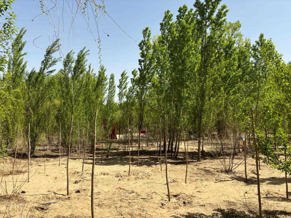 5月的河套平原萬物萌發(fā),充滿生機(jī)與希望。走進(jìn)地處黃河“幾字彎”的內(nèi)蒙古自治區(qū)巴彥淖爾市臨河區(qū)新華林場(chǎng),沙地里一棵棵堅(jiān)韌挺拔的樹木正迎著春風(fēng),舒枝展葉,茁壯生長(zhǎng)。