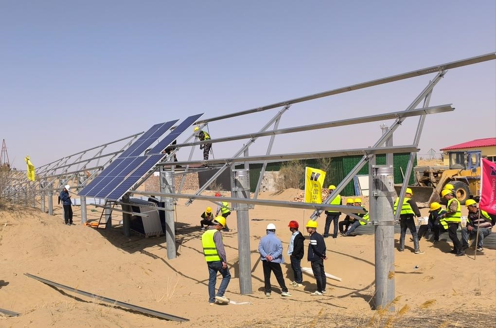記者在新華林場(chǎng)民樂作業(yè)區(qū)看到,與其他作業(yè)區(qū)的造林治沙方式相比,這里既沒有栽樹,也沒有種草,而是在沙地里“栽”下了一個(gè)個(gè)水泥樁。葛文斌告訴記者:“這里是防沙治沙和風(fēng)電光伏一體化工程項(xiàng)目區(qū)?!浴鄻毒褪菫楹笃诎惭b光伏板、建設(shè)光伏電站做準(zhǔn)備。在光伏板上發(fā)電的同時(shí),我們還可以在光伏板下種植固沙植物,幫助地表植被恢復(fù),達(dá)到既能發(fā)電‘生金’又能實(shí)現(xiàn)沙化土地縮減的雙重功效?!保ㄓ浾呃钤破?、侯維軼)