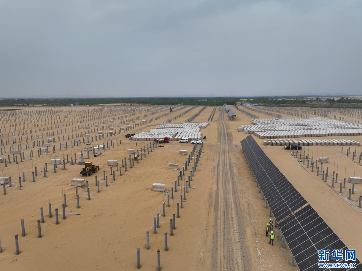 ??6月13日拍攝的翁牛特旗蒙地阿什罕光伏基地建設(shè)現(xiàn)場。新華網(wǎng)發(fā)(叢金龍 攝)