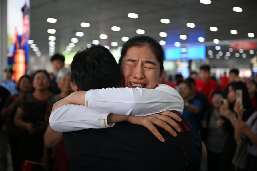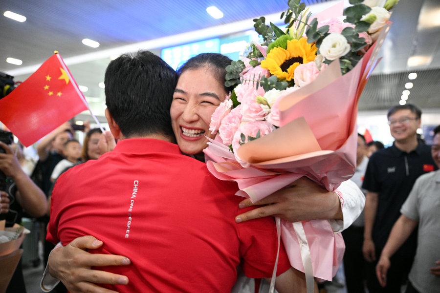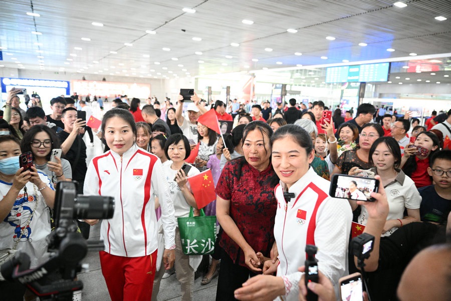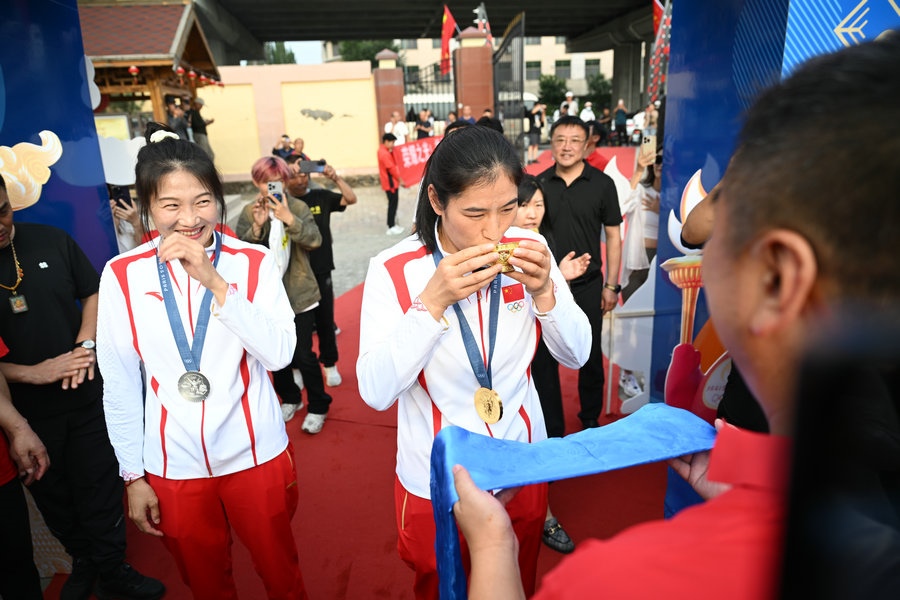 8月15日,征戰(zhàn)巴黎奧運(yùn)會(huì)的內(nèi)蒙古健兒李倩、楊柳乘坐高鐵,從北京回到呼和浩特。李倩在巴黎奧運(yùn)會(huì)斬獲女子75公斤級(jí)金牌,楊柳摘得女子66公斤級(jí)銀牌。奧運(yùn)健兒載譽(yù)歸來(lái),身在家鄉(xiāng)的親朋好友、隊(duì)友教練為她們準(zhǔn)備了盛大的歡迎儀式。(記者 李艷紅 李文華 林則志 石茹意)