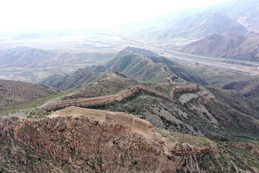 10月12日,從空中俯瞰三關(guān)長(zhǎng)城。