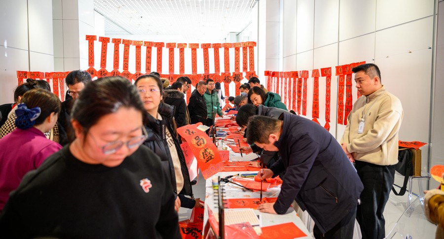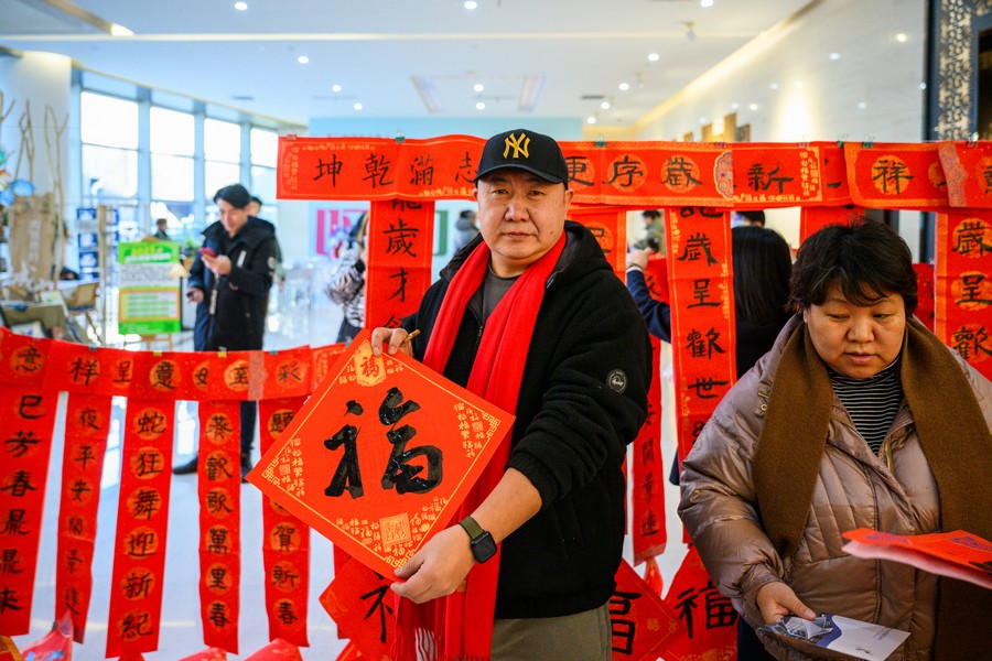 1月15日,呼和浩特市城市展示中心一樓大廳洋溢著濃濃的節(jié)日氛圍,“美麗青城·多彩非遺”——翰墨送福·喜迎新春 2025寫(xiě)春聯(lián)、迎新春主題活動(dòng)正在這里舉行。