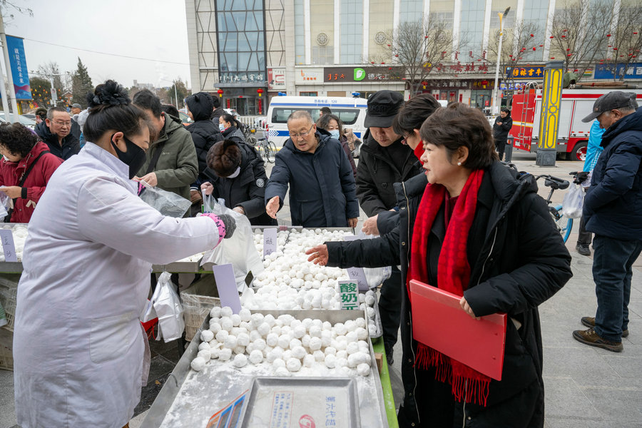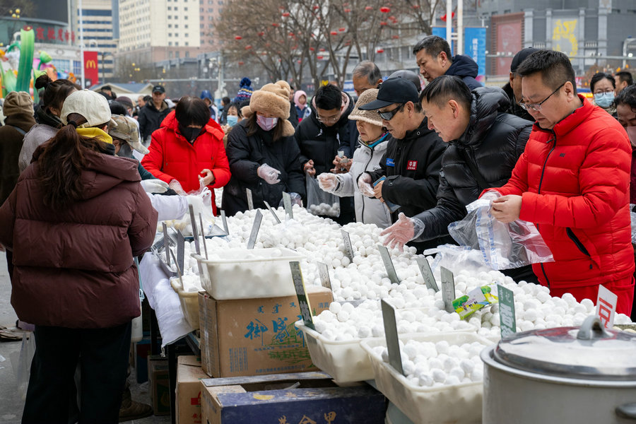 2月11日,隨著正月十五元宵節(jié)臨近,在呼和浩特市舊城北門沿街商鋪,傳統(tǒng)手工元宵迎來銷售高峰。芝麻餡的醇厚香甜、花生餡的濃郁香脆、榴蓮餡的獨特馥郁,市民根據(jù)自身喜好挑選不同口味的元宵,圓滾滾的元宵象征著團團圓圓,也勾起了人們對傳統(tǒng)手藝的美好回憶。