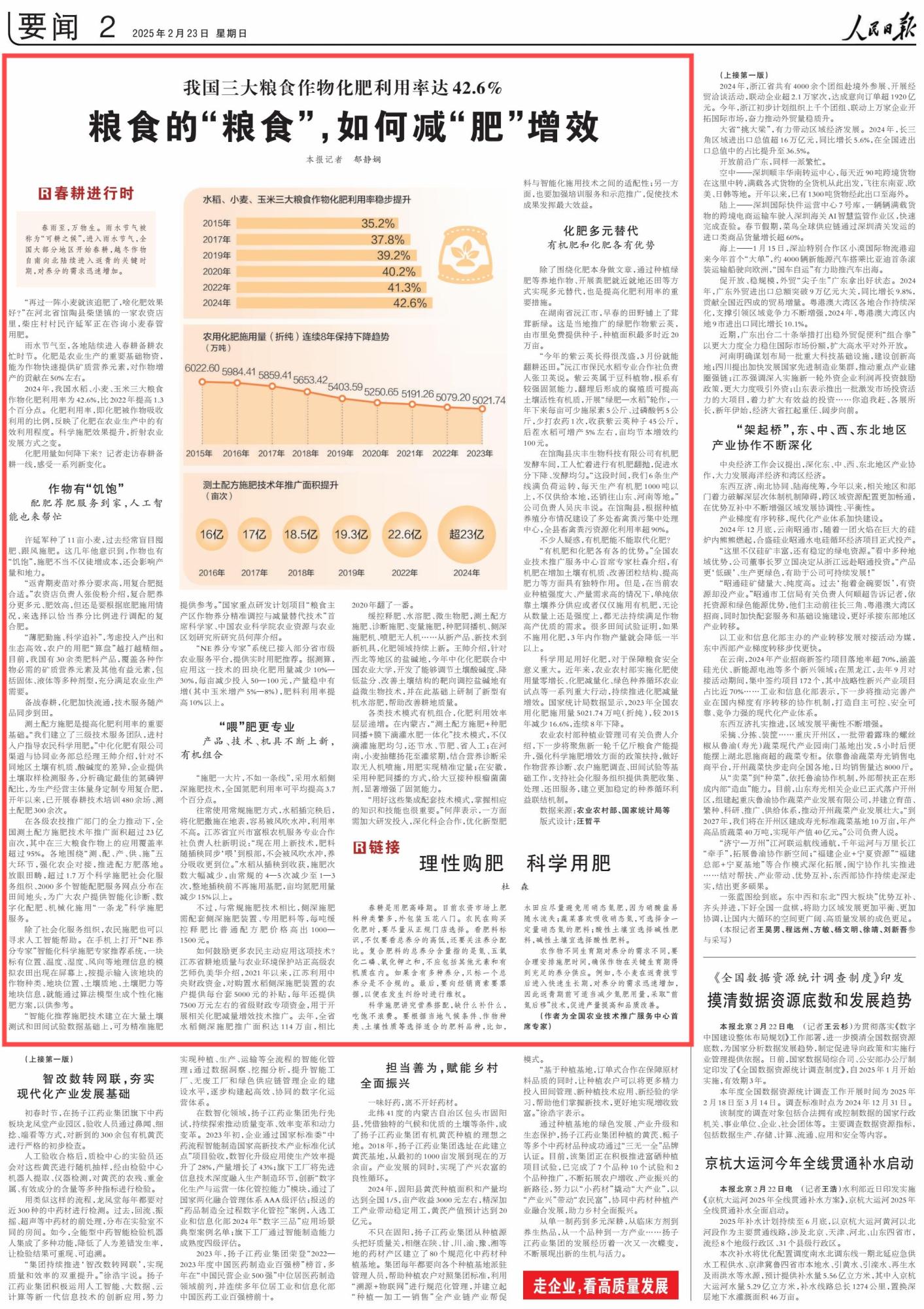 2025年2月23日,《人民日報(bào)》第2版刊發(fā)題為《糧食的“糧食”,如何減“肥”增效》的文章,其中報(bào)道了內(nèi)蒙古“測土配方施肥+種肥同播+膜下滴灌水肥一體化”技術(shù)模式。