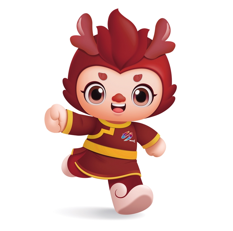 吉祥物“赤龍兒”,寓意鮮明、簡潔響亮,又有舉辦地“赤峰”的內(nèi)涵。吉祥物活潑可愛、聰慧靈動,身著以赭紅色(赤峰紅山山體顏色)和黃色為整體色彩的民族服飾,既凸顯“紅山文化”特色,又體現(xiàn)運動會激情熱烈、陽光活力的氛圍;臉上洋溢著自豪的笑容,以奔跑的姿態(tài)歡迎各地來賓蒞臨赤峰,充分展現(xiàn)內(nèi)蒙古各族人民勤勞樸實、熱情好客的優(yōu)良品質(zhì)。