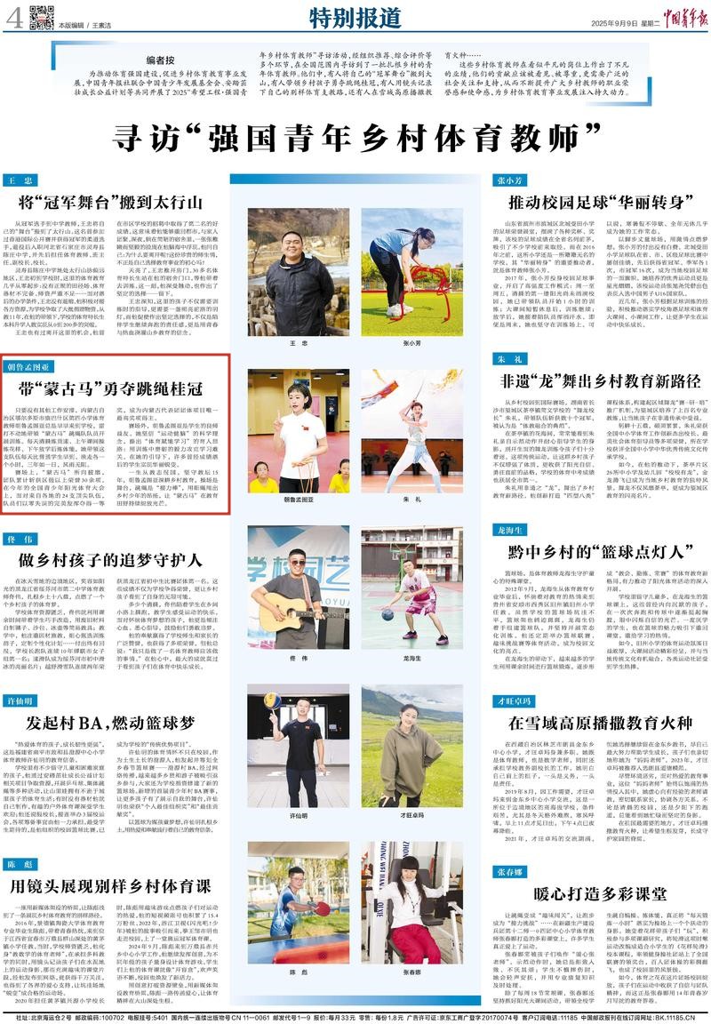 2025年9月9日,《中國青年報》第4版刊發(fā)題為《朝魯孟圖亞帶“蒙古馬”勇奪跳繩桂冠》的文章,報道了內蒙古自治區(qū)鄂爾多斯市康巴什區(qū)第四小學體育教師朝魯孟圖亞深耕鄉(xiāng)村教育,用細繩甩出鄉(xiāng)村少年的昂揚,讓“蒙古馬”在教育田野持續(xù)綻放光芒。