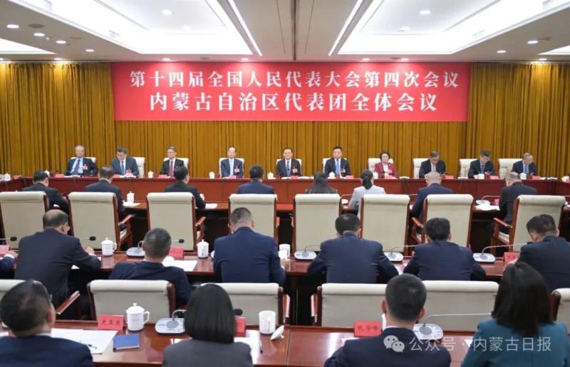 3月3日,出席十四屆全國(guó)人大四次會(huì)議的內(nèi)蒙古代表團(tuán)在駐地召開全體會(huì)議。草原云·內(nèi)蒙古新聞網(wǎng)記者 馬建兵 攝