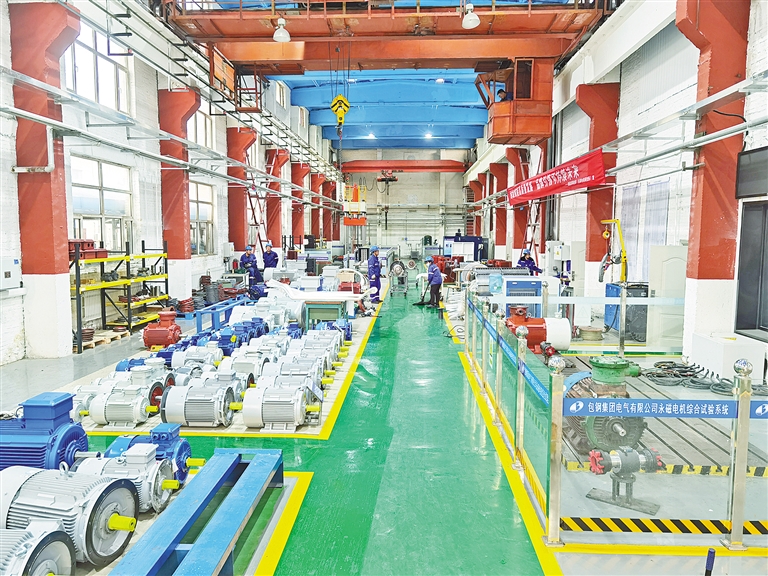 包鋼集團(tuán)電氣有限公司稀土永磁電機組裝車間。